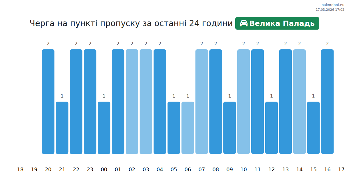 За період 16.03.2026 з 00:00 по 23:59 на кордоні на пункті пропуску Велика Паладь - авто були зафіксовані наступні ключові моменти: