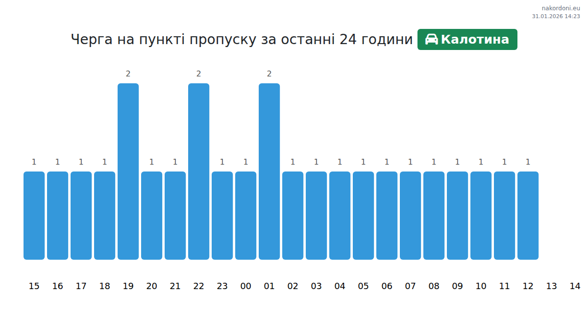 Аналіз черги на кордоні на пункті пропуску Калотина - легковий автомобіль за вчора