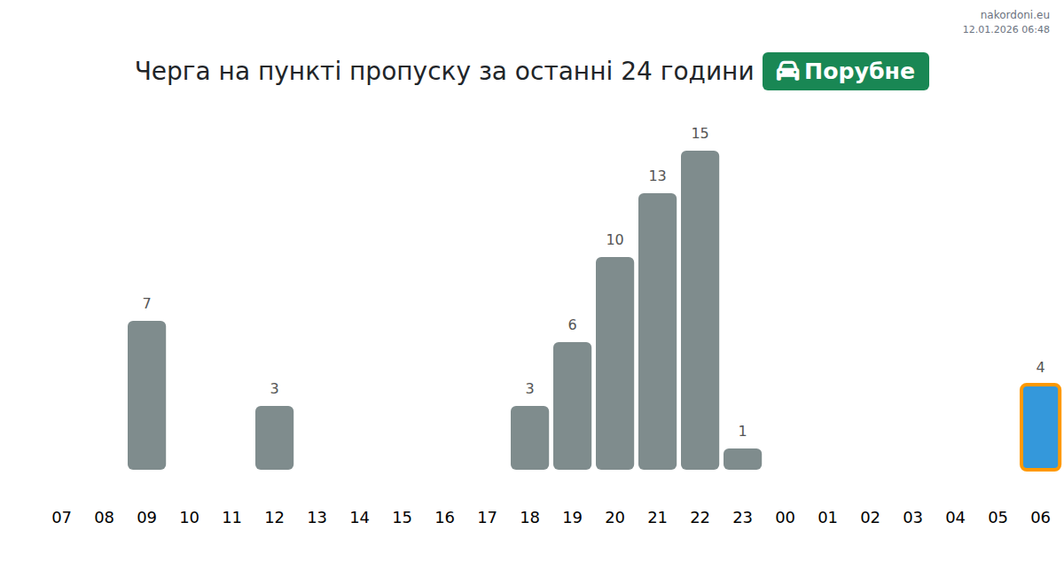 Для уникнення довгих черг на кордоні на пункті пропуску Порубне - легковий автомобіль, рекомендуємо планувати перетин кордону в години найменшого навантаження. Згідно з даними за минулу добу, найменша кількість автомобілів спостерігалася між 9:00 та 12:00 годинами. Це ідеальний час для перетину кордону, щоб зекономити час і уникнути затримок.