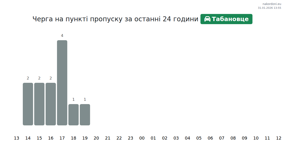 Аналіз черги на кордоні на пункті пропуску Табановце - легковий автомобіль за вчора