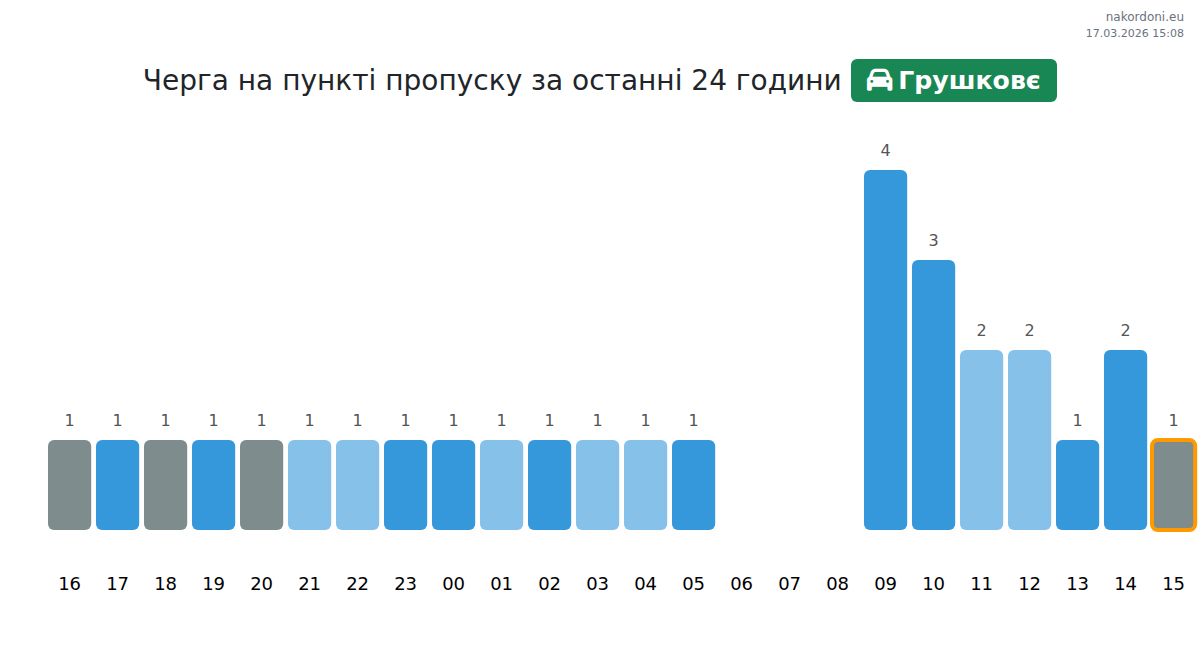 За період 16.03.2026 з 00:00 по 23:59 на кордоні на пункті пропуску Грушковє - авто були зафіксовані наступні ключові моменти: