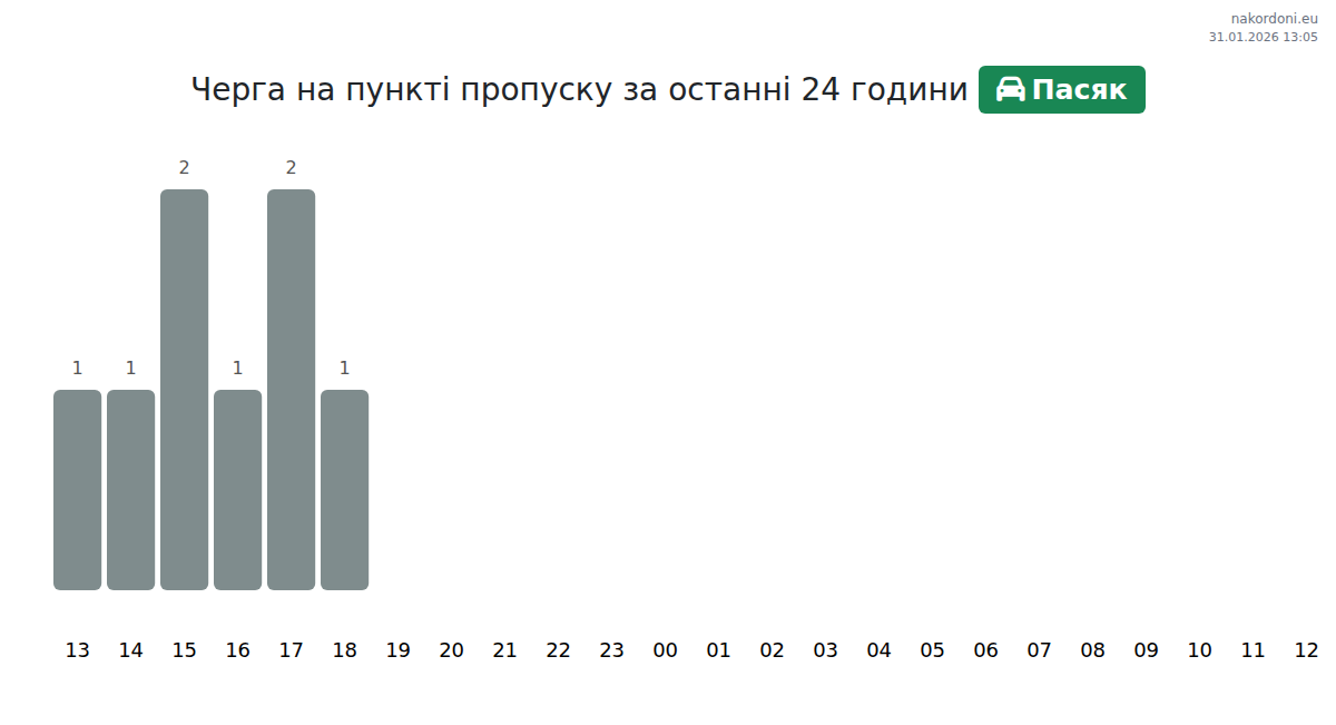Аналіз черги на кордоні на пункті пропуску Пасяк - легковий автомобіль за вчора