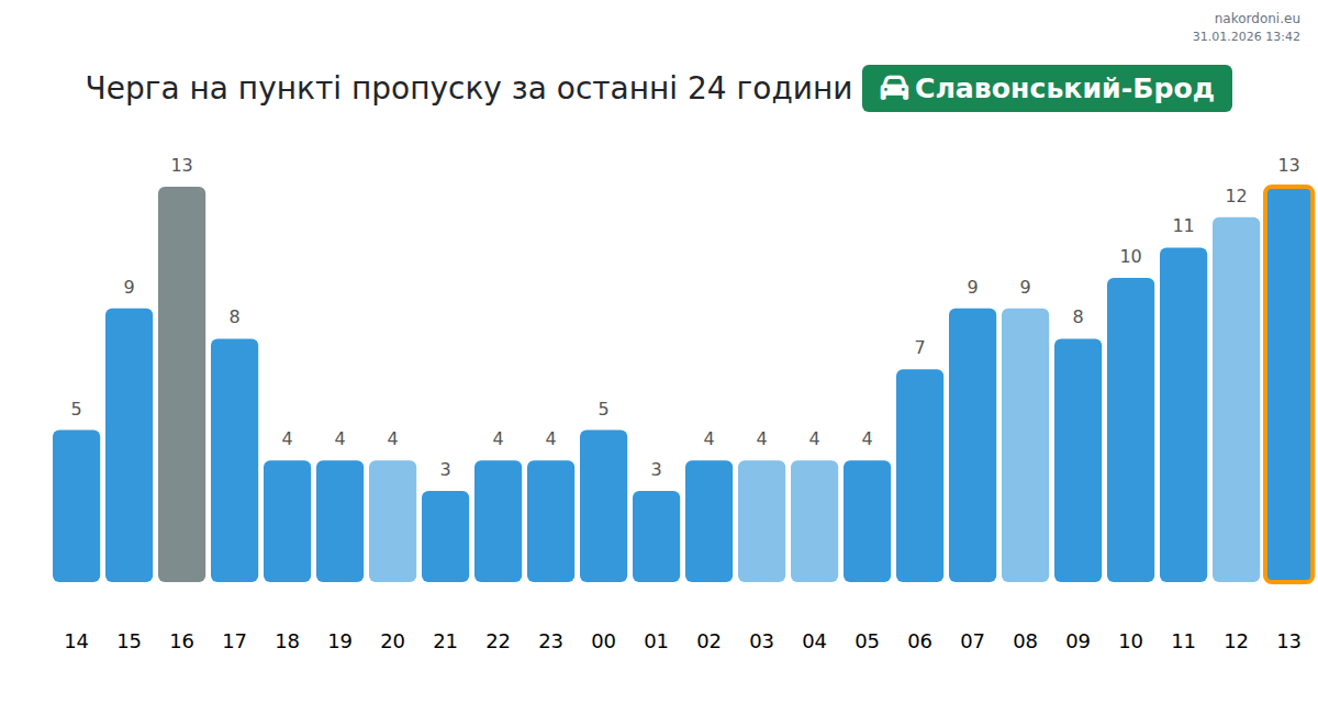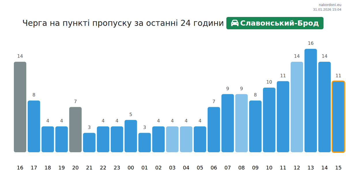 Плануйте свої поїздки заздалегідь, використовуючи актуальну інформацію про черги на кордоні на пункті пропуску Славонський-Брод - легковий автомобіль, щоб зробити ваш перетин швидким і зручним. Приділіть особливу увагу цим годинам, щоб уникнути пікового навантаження і зменшити час очікування.