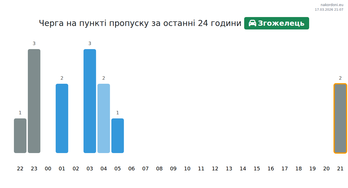 За період 16.03.2026 з 00:00 по 23:59 на кордоні на пункті пропуску Згожелець - легковий автомобіль були зафіксовані наступні ключові моменти: