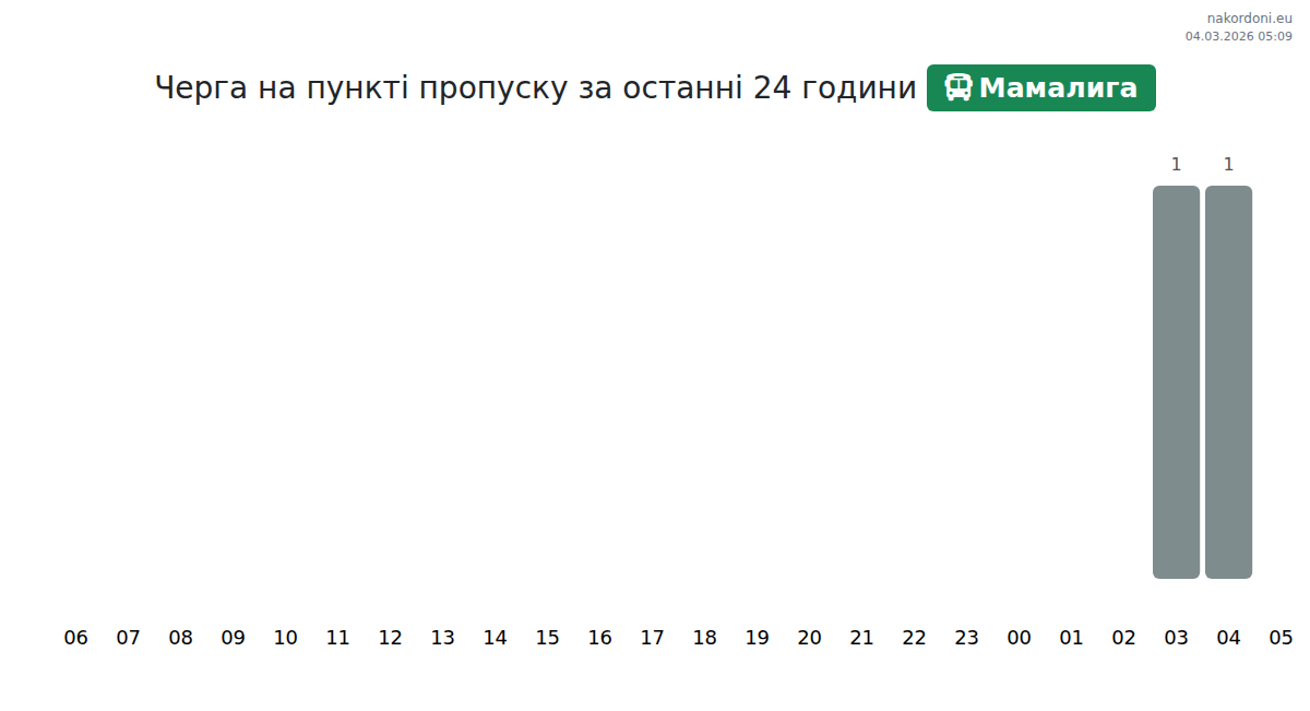 Для уникнення довгих черг на кордоні на пункті пропуску Мамалига - автобус, рекомендуємо планувати перетин кордону в години найменшого навантаження. Згідно з даними за минулу добу, найменша кількість автомобілів спостерігалася між :00 та 5:00 годинами. Це ідеальний час для перетину кордону, щоб зекономити час і уникнути затримок.