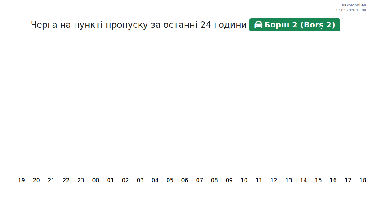 Плануйте свої поїздки заздалегідь, використовуючи актуальну інформацію про черги на кордоні на пункті пропуску Борш 2 (Borș 2) - легковий автомобіль, щоб зробити ваш перетин швидким і зручним. Приділіть особливу увагу цим годинам, щоб уникнути пікового навантаження і зменшити час очікування.