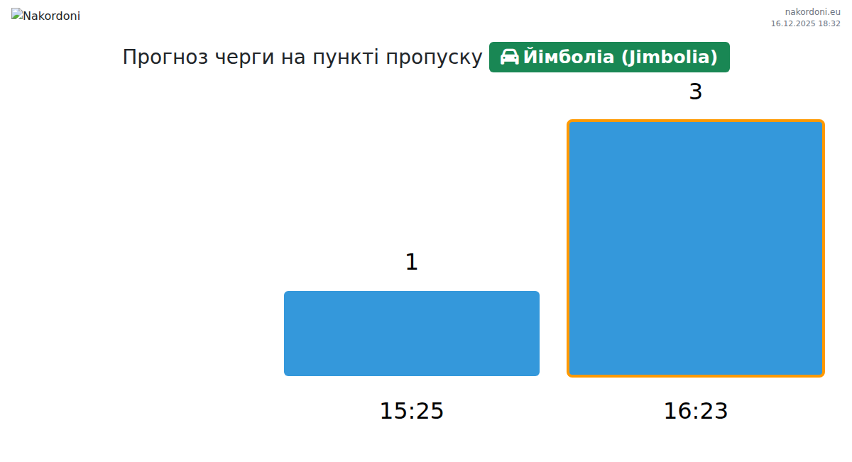За період 15.12.2025 з 00:00 по 23:59 на кордоні на пункті пропуску Йімболіа (Jimbolia) - легковий автомобіль були зафіксовані наступні ключові моменти:
