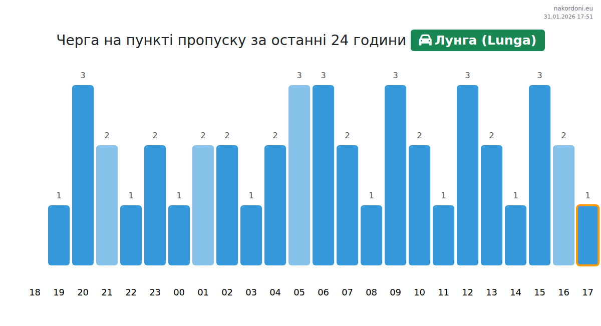 Аналіз черги на кордоні на пункті пропуску Лунга (Lunga) - легковий автомобіль за вчора