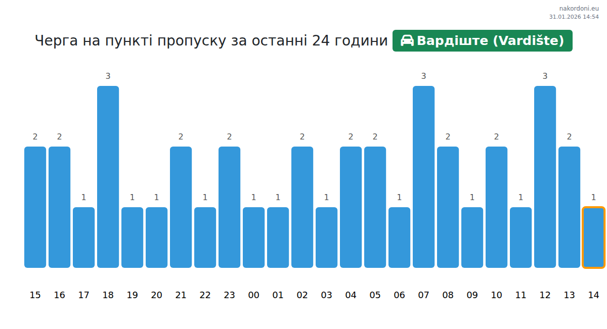 Аналіз черги на кордоні на пункті пропуску Вардіште (Vardište) - легковий автомобіль за вчора
