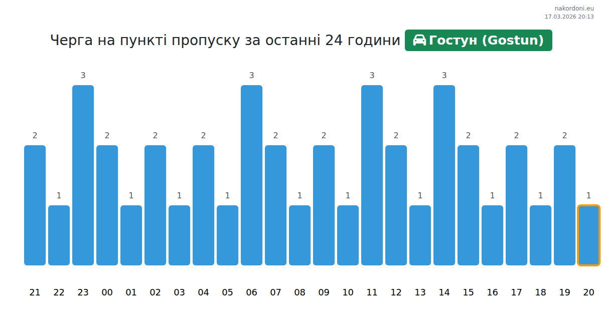 Аналіз черги на кордоні на пункті пропуску Гостун (Gostun) - легковий автомобіль за вчора