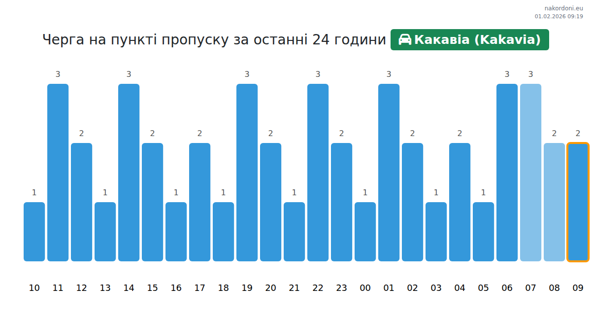 Аналіз черги на кордоні на пункті пропуску Какавіа (Kakavia) - легковий автомобіль за вчора