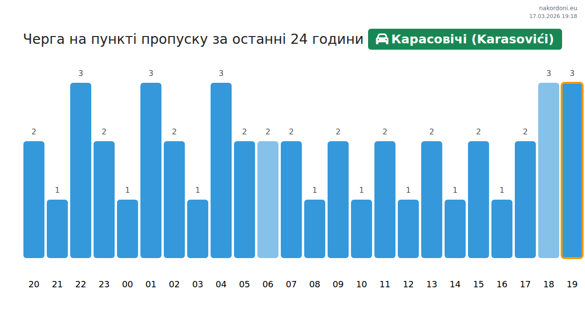 Аналіз черги на кордоні на пункті пропуску Карасовічі (Karasovići) - легковий автомобіль за вчора