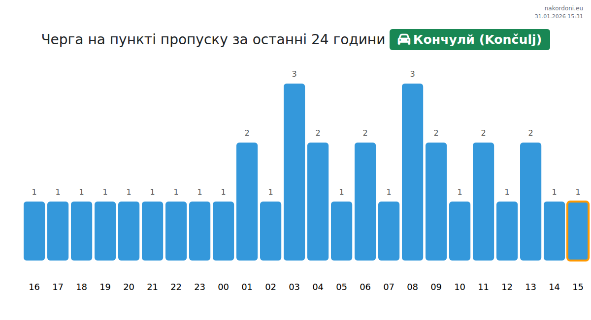 Аналіз черги на кордоні на пункті пропуску Кончулй (Končulj) - легковий автомобіль за вчора