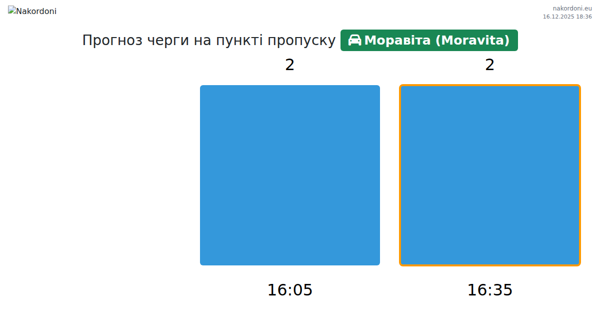 Плануйте свої поїздки заздалегідь, використовуючи актуальну інформацію про черги на кордоні на пункті пропуску Моравіта (Moravita) - легковий автомобіль, щоб зробити ваш перетин швидким і зручним. Приділіть особливу увагу цим годинам, щоб уникнути пікового навантаження і зменшити час очікування.