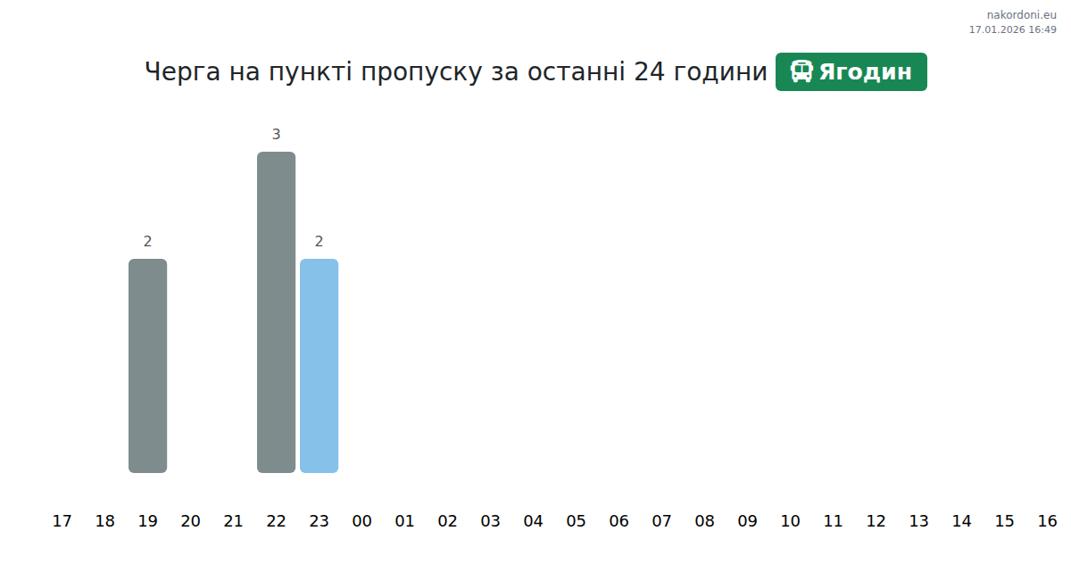 За період 16.01.2026 з 00:00 по 23:59 на кордоні на пункті пропуску Ягодин - автобус були зафіксовані наступні ключові моменти: