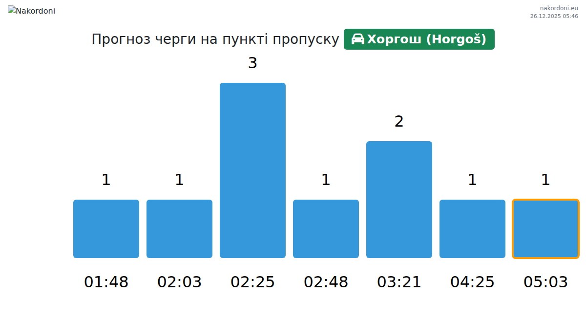 За період 25.12.2025 з 00:00 по 23:59 на кордоні на пункті пропуску Хоргош (Horgoš) - легковий автомобіль були зафіксовані наступні ключові моменти: