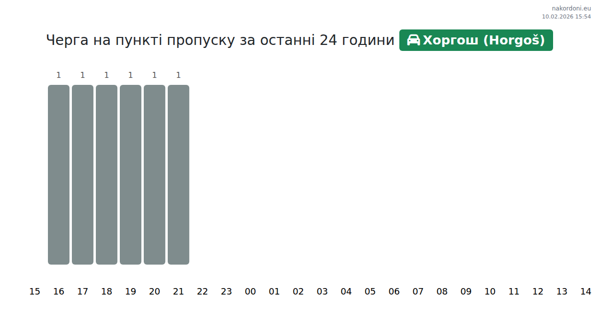 За період 09.02.2026 з 00:00 по 23:59 на кордоні на пункті пропуску Хоргош (Horgoš) - легковий автомобіль були зафіксовані наступні ключові моменти: