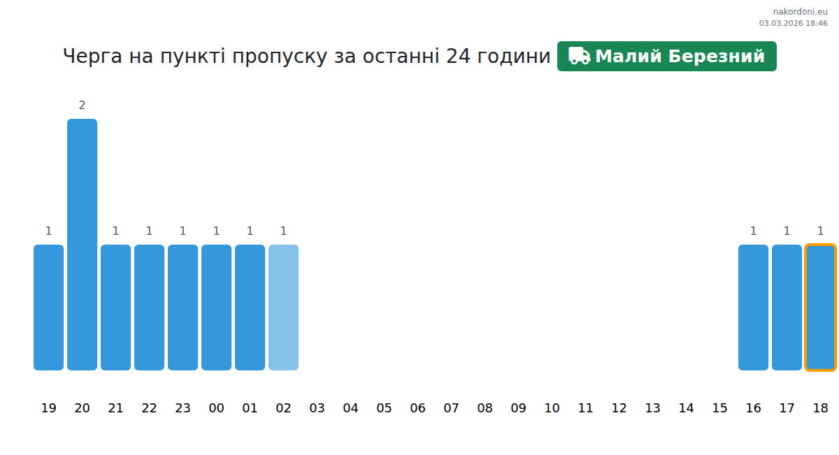 За період 02.03.2026 з 00:00 по 23:59 на кордоні на пункті пропуску Малий Березний - авто були зафіксовані наступні ключові моменти: