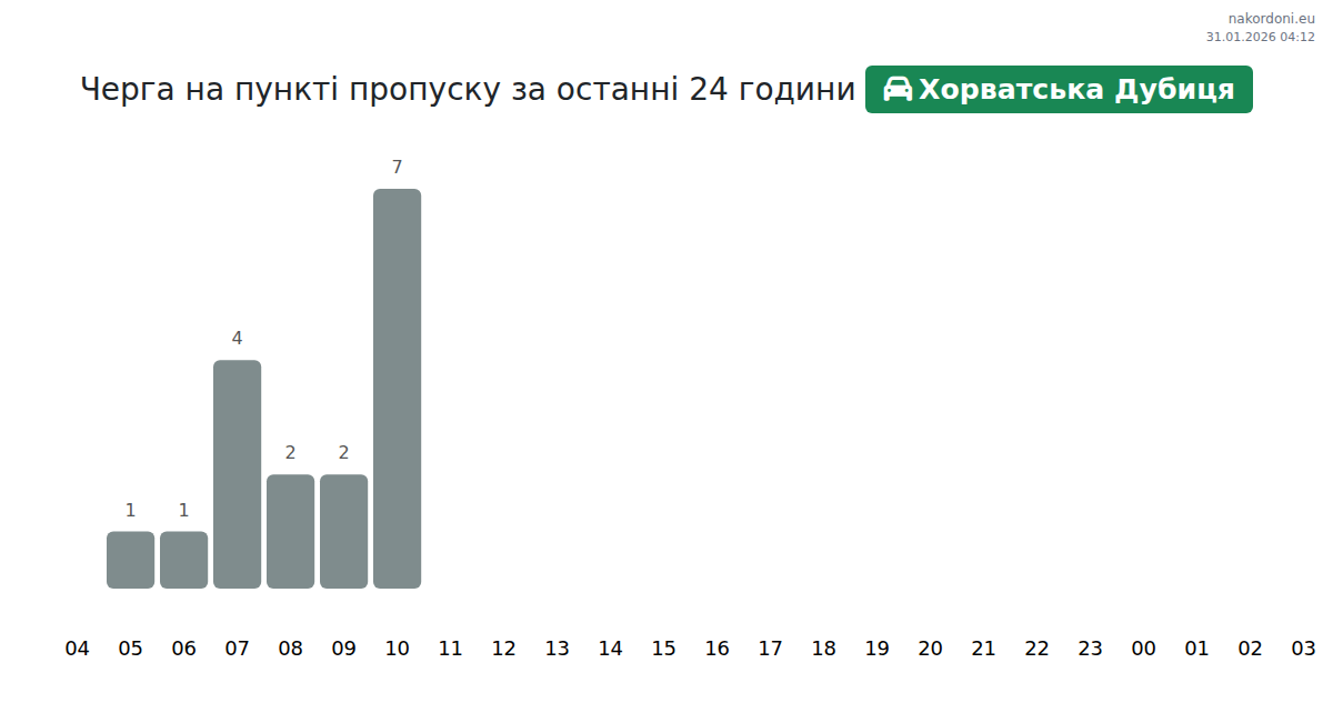 Аналіз черги на кордоні на пункті пропуску Хорватська Дубиця - легковий автомобіль за вчора