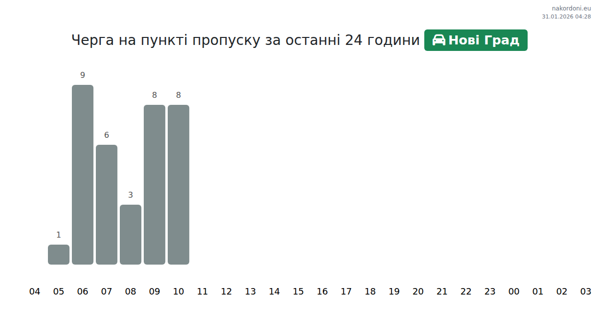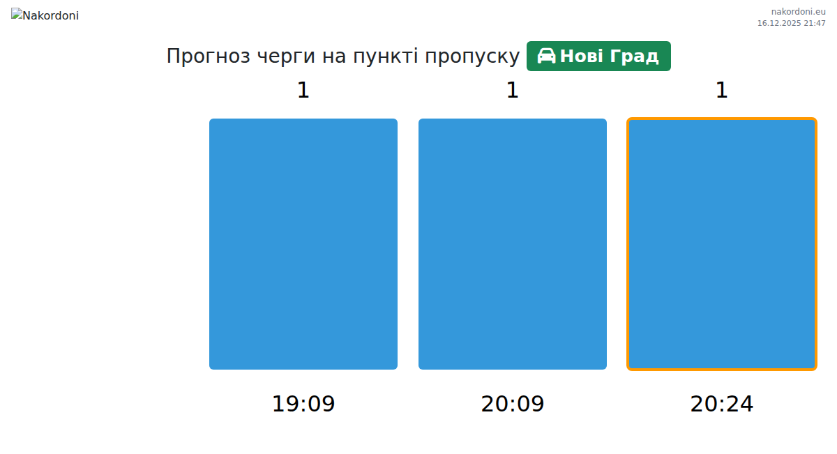 Аналіз черги на кордоні на пункті пропуску Нові Град - легковий автомобіль за вчора