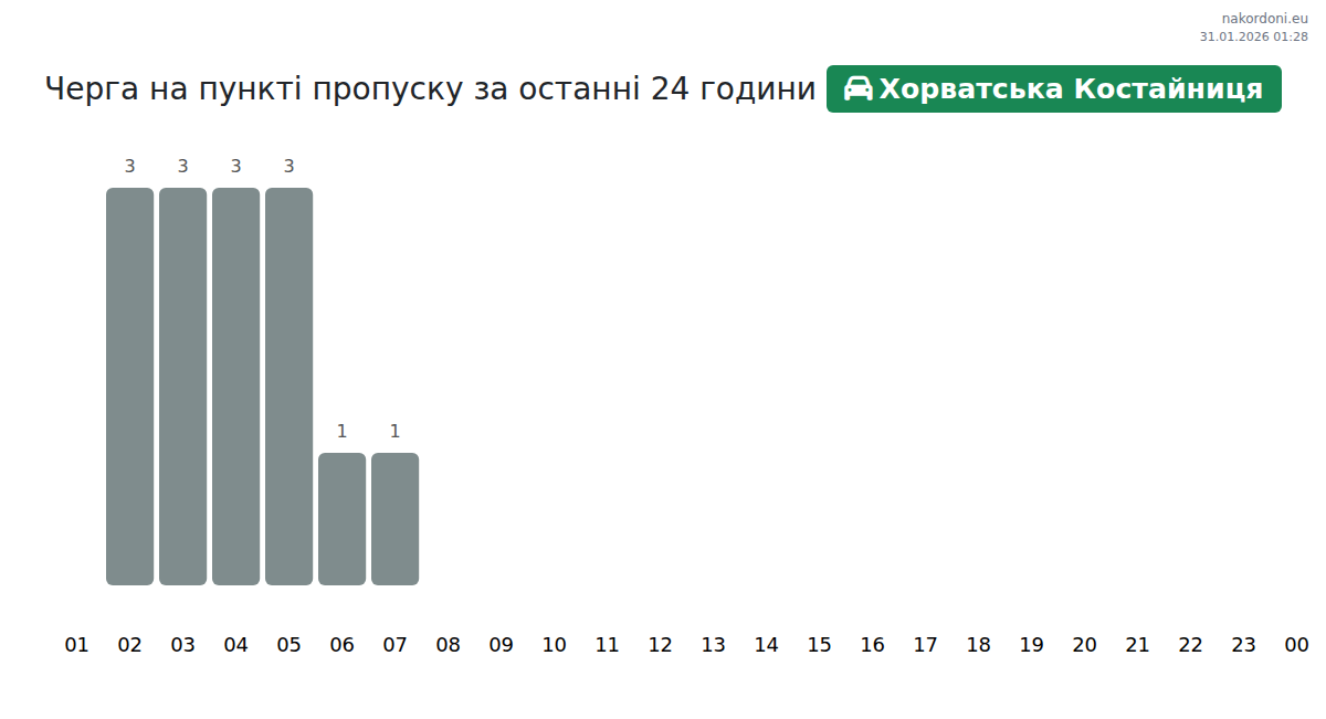 Аналіз черги на кордоні на пункті пропуску Хорватська Костайниця - легковий автомобіль за вчора