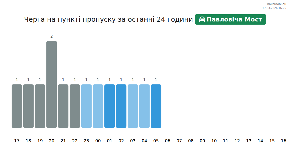 За період 16.03.2026 з 00:00 по 23:59 на кордоні на пункті пропуску Павловіча Мост - легковий автомобіль були зафіксовані наступні ключові моменти: