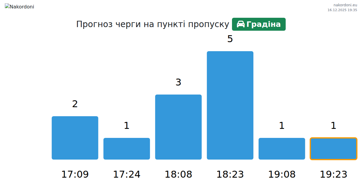 Аналіз черги на кордоні на пункті пропуску Градіна - легковий автомобіль за вчора
