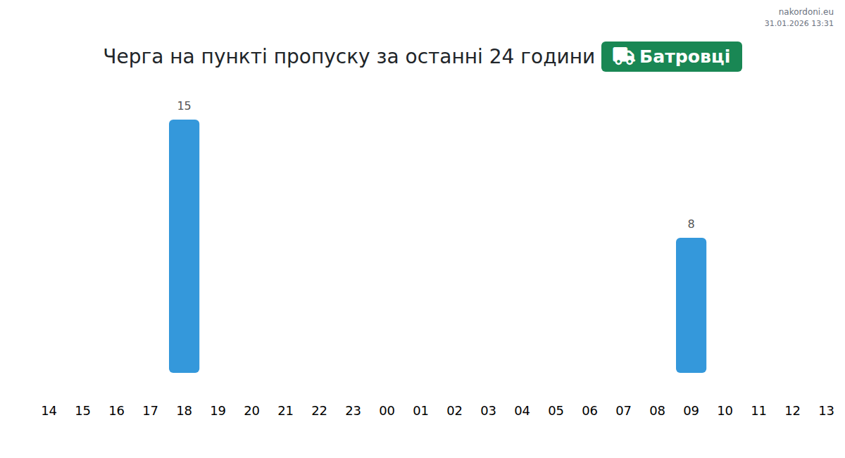Аналіз черги на кордоні на пункті пропуску Батровці - вантажний транспорт (до 7,5 тонн) за вчора