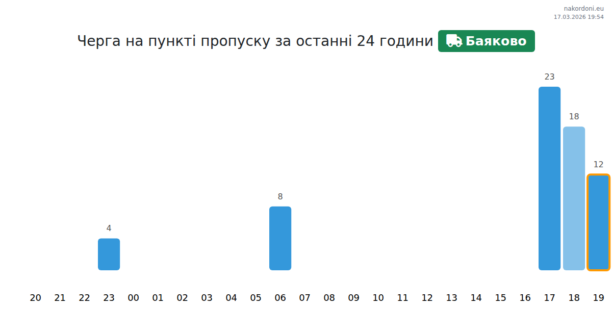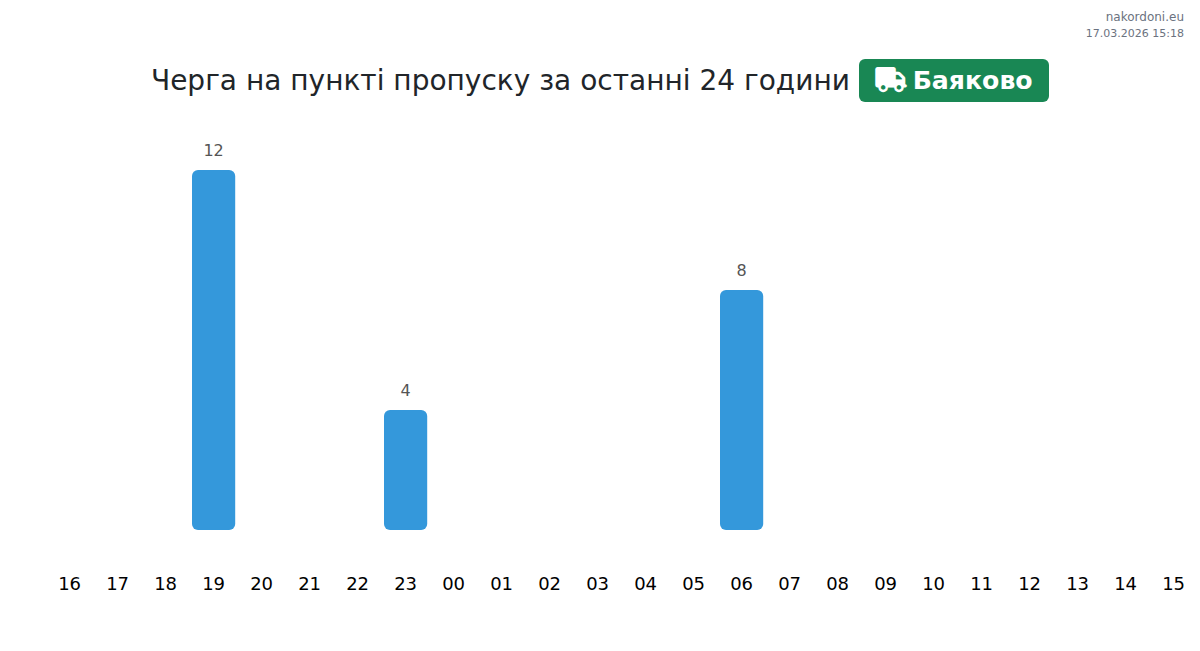 Плануйте свої поїздки заздалегідь, використовуючи актуальну інформацію про черги на кордоні на пункті пропуску Баяково - вантажний транспорт (до 7,5 тонн), щоб зробити ваш перетин швидким і зручним. Приділіть особливу увагу цим годинам, щоб уникнути пікового навантаження і зменшити час очікування.