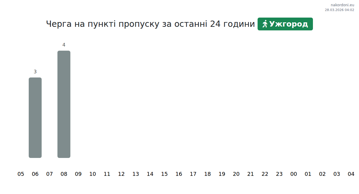 Для уникнення довгих черг на кордоні на пункті пропуску Ужгород - пішохід, рекомендуємо планувати перетин кордону в години найменшого навантаження. Згідно з даними за минулу добу, найменша кількість автомобілів спостерігалася між 5:00 та 9:00 годинами. Це ідеальний час для перетину кордону, щоб зекономити час і уникнути затримок.