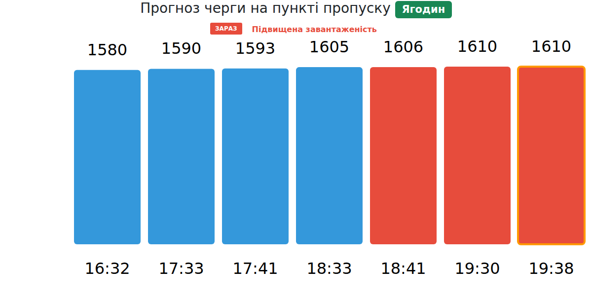 Аналіз черги на кордоні на пункті пропуску Ягодин - вантажний транспорт за вчора