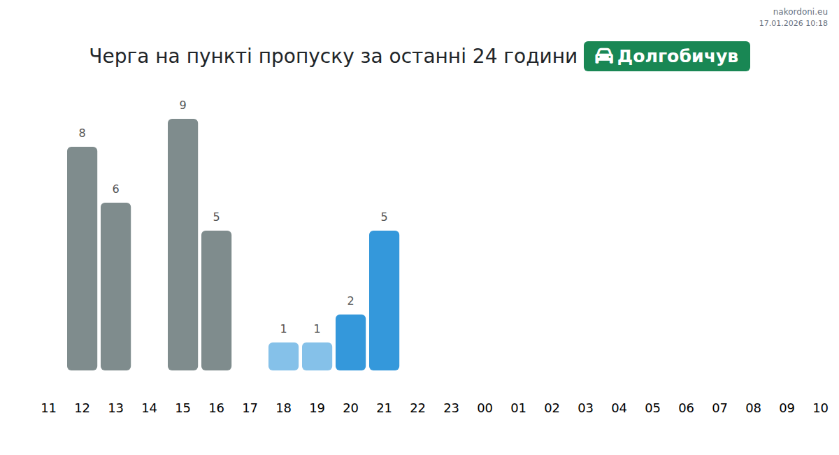 Для уникнення довгих черг на кордоні на пункті пропуску Долгобичув - легковий автомобіль, рекомендуємо планувати перетин кордону в години найменшого навантаження. Згідно з даними за минулу добу, найменша кількість автомобілів спостерігалася між 2:00 та 5:00 годинами. Це ідеальний час для перетину кордону, щоб зекономити час і уникнути затримок.