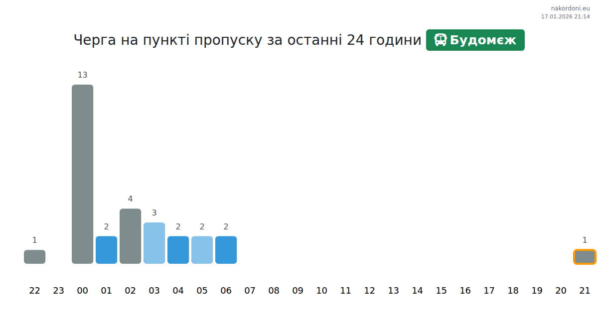 Для уникнення довгих черг на кордоні на пункті пропуску Будомєж - автобус, рекомендуємо планувати перетин кордону в години найменшого навантаження. Згідно з даними за минулу добу, найменша кількість автомобілів спостерігалася між 10:00 та 14:00 годинами. Це ідеальний час для перетину кордону, щоб зекономити час і уникнути затримок.