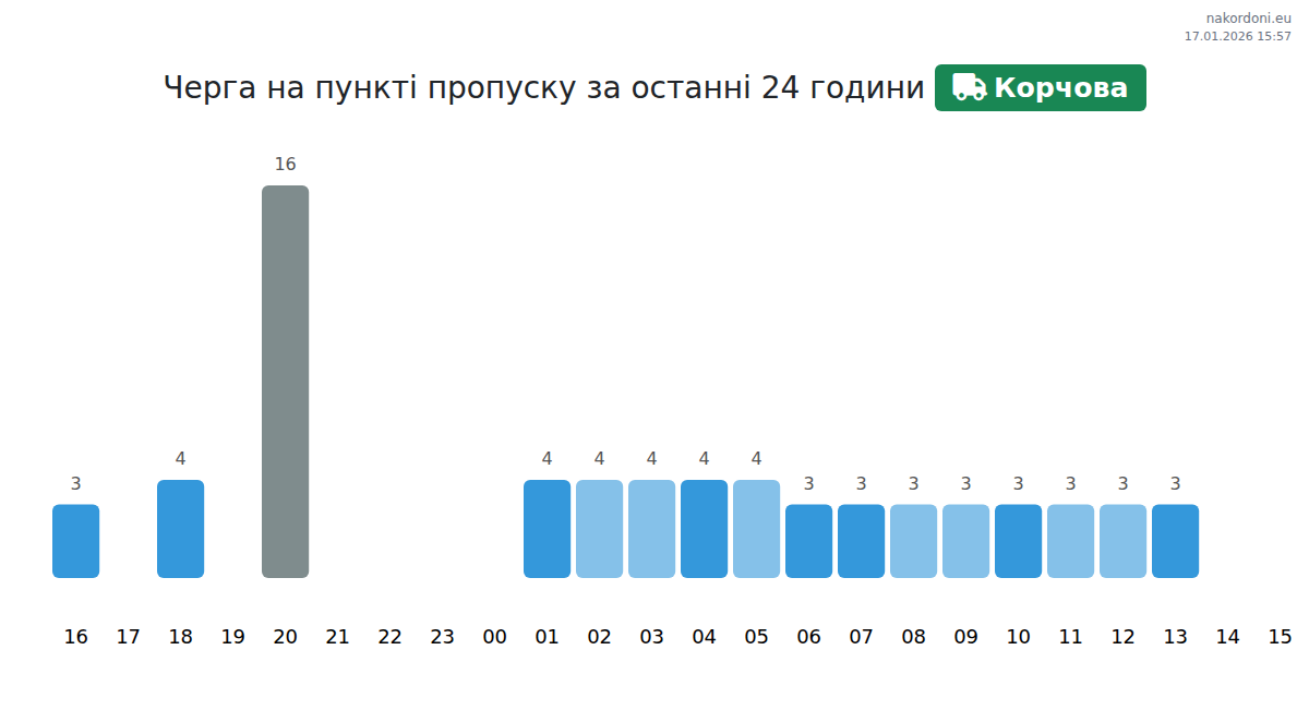 За період 16.01.2026 з 00:00 по 23:59 на кордоні на пункті пропуску Корчова - вантажний транспорт були зафіксовані наступні ключові моменти: