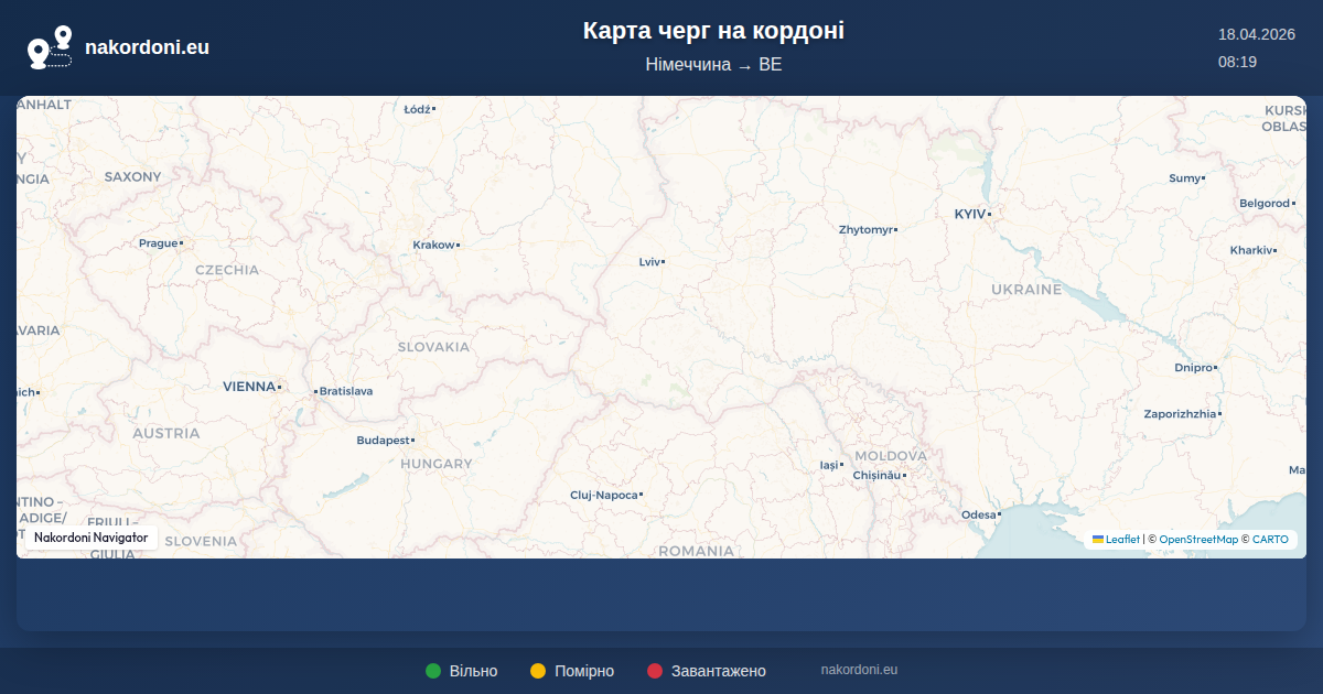 Інтерактивна карта кордону Німеччина — BE з онлайн чергами, прогнозом та статусом переходів