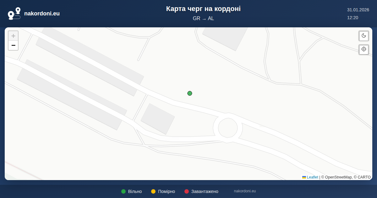 Інтерактивна карта кордону Греція — Албанія з онлайн чергами, прогнозом та статусом переходів