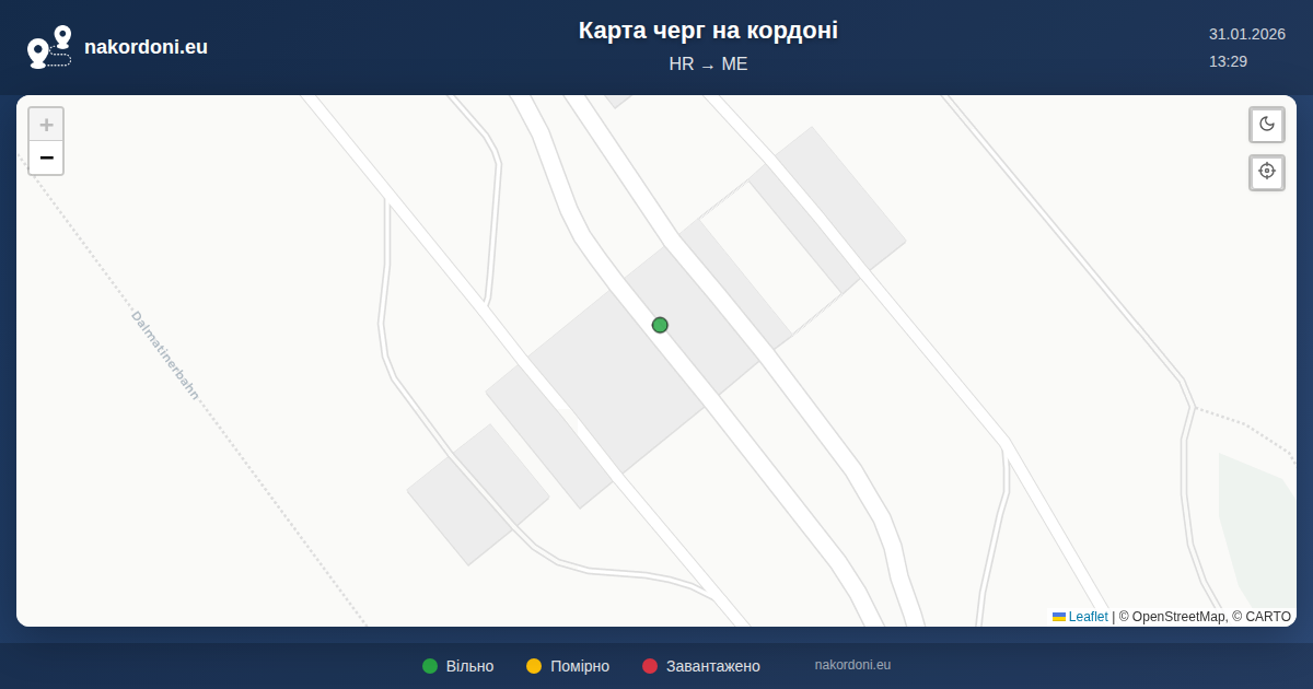 Інтерактивна карта кордону Хорватія — Чорногорія з онлайн чергами, прогнозом та статусом переходів