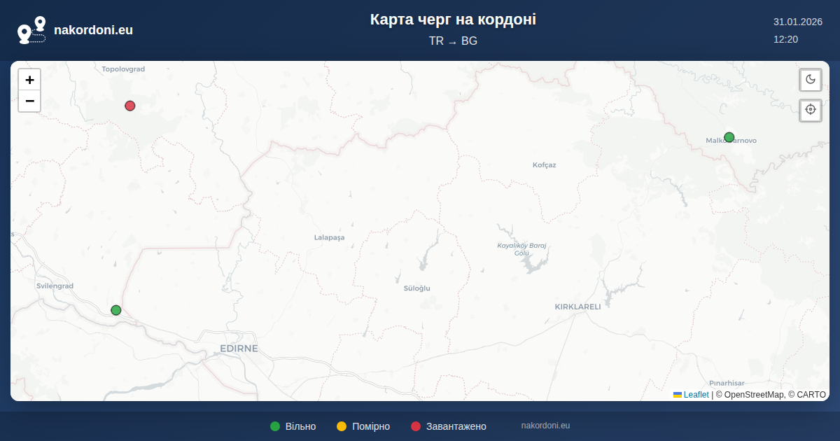 Інтерактивна карта кордону Туреччина — Болгарія з онлайн чергами, прогнозом та статусом переходів
