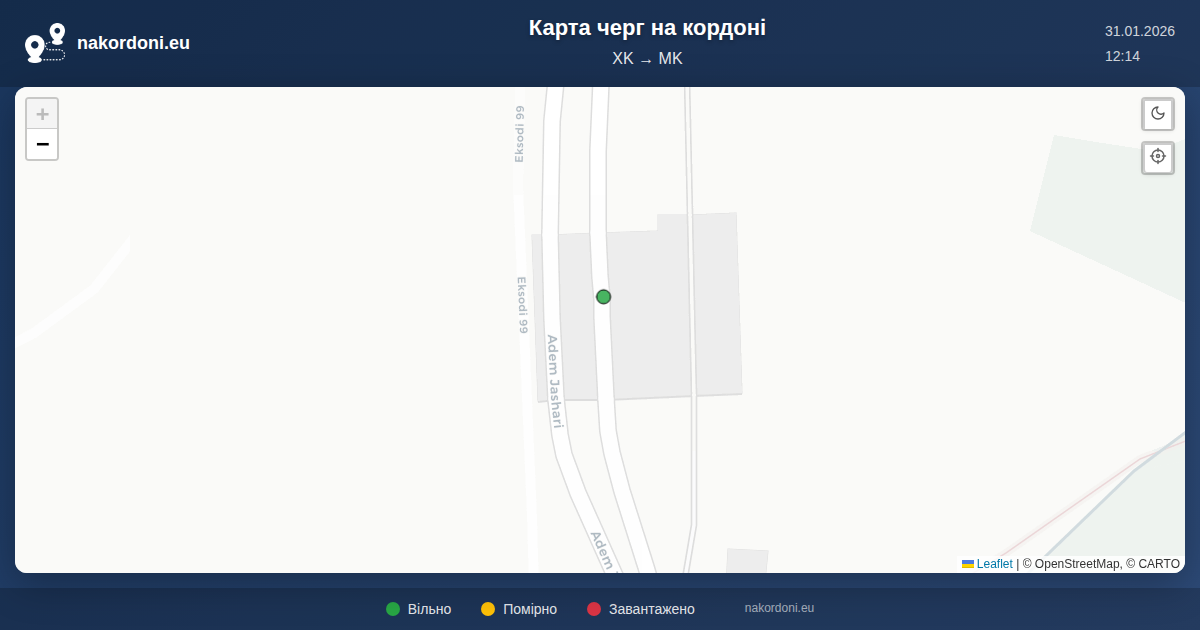 Інтерактивна карта кордону Косово — Північна Македонія з онлайн чергами, прогнозом та статусом переходів